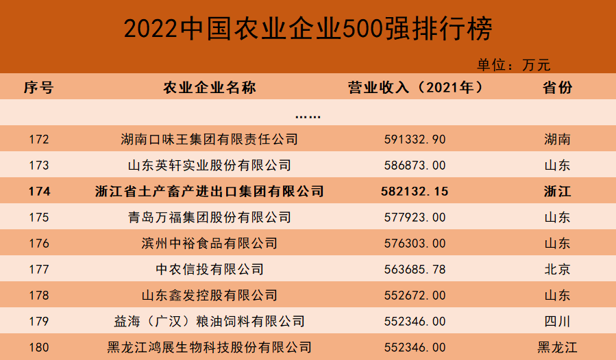 浙江土畜集團(tuán)榮登“中國(guó)農(nóng)業(yè)企業(yè)500強(qiáng)”榜單