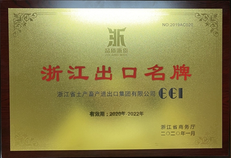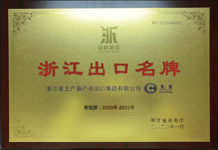 浙江土畜榮獲“浙江外貿出口重點聯系企業”、“浙江出口名牌”獎牌