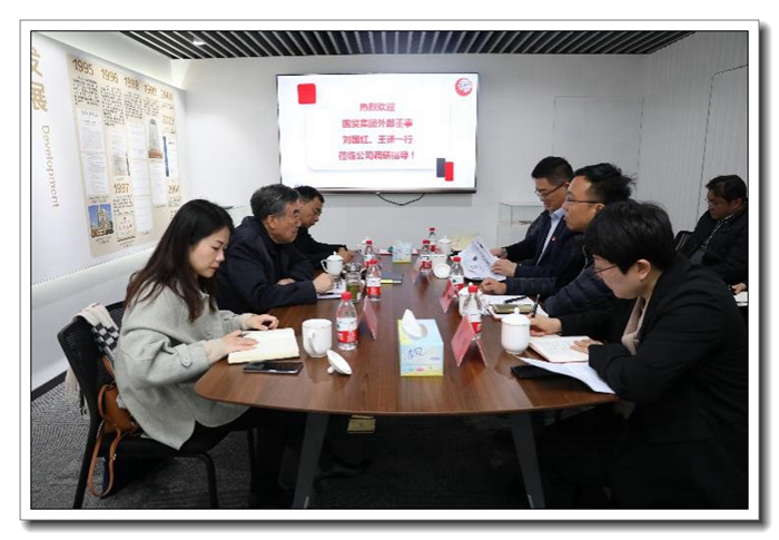 外部董事劉國紅、王謙一行先后參觀了公司檢測中心和企業文化俱樂部,詳細了解了公司檢測中心運營情況和公司發展歷程。座談會上,張斌董事長對劉國紅、王謙董事一行來訪表示熱烈歡迎,并重點介紹了公司十四五戰略規劃目標,以及下一步科技引領、科工貿融四輪驅動等改革發展思路。楊躍勝總經理就今年公司落實“六穩”“六?!薄⑥D型發展突破、雙循環、防風險、整合融合五項重點工作,以及當前面臨的主要困難等情況作了介紹。