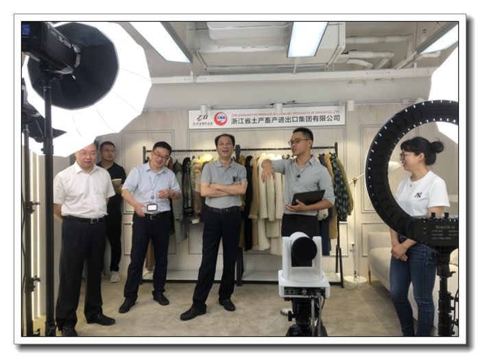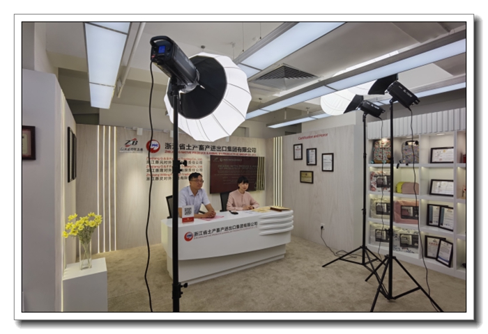 浙江土畜公司層面分布制定、實施籌備方案,上傳4000余條格式統一的產品圖片、視頻等信息資料,建立15個參展展區的虛擬展位,通過云展廳多維度展現公司拳頭產品、品牌展位形象的基礎上,高標準搭建企業直播間,新建公司形象和產品展示兩個直播間,根據產品劃分直播區域,最大程度利用直播空間。網絡直播對于傳統外貿企業由線下轉到線上營銷的重要窗口,浙江土畜在展前多次組織業務員主播參加線上和線下直播培訓,提升直播技能、加強知識產權保護意識。