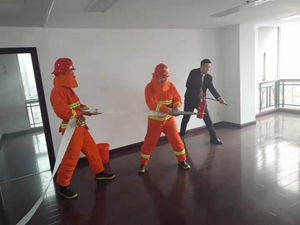 下午4點整,演習總指揮楊躍勝宣布演習正式開始。隨著火災警報鈴聲的響起,演習指揮部立即啟動公司火災應急預案,所有電梯立即緊急迫降,大樓就近安保巡邏人員持滅火器迅速開展撲救,同時公司微型消防站隊員在三分鐘內奔赴火災現場增援。參加演習的部門安全員在聽到警報和廣播后立即組織本部門員工就近從消防通道迅速有序地疏散到安全地帶。