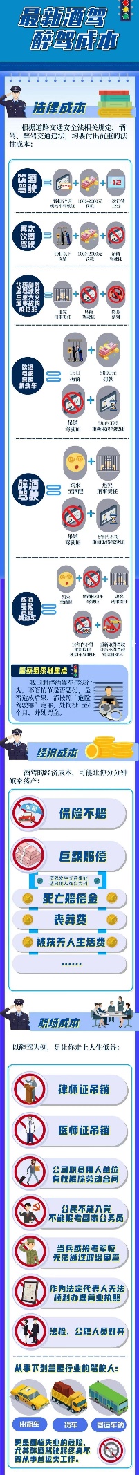 為進一步嚴明紀律規矩,督促引導公司廣大員工特別是黨員干部帶頭遵紀守法,堅決遏制酒駕醉駕違紀違法行為的發生,公司紀委現將酒駕醉駕成本清單予以整理,供大家警醒學習。