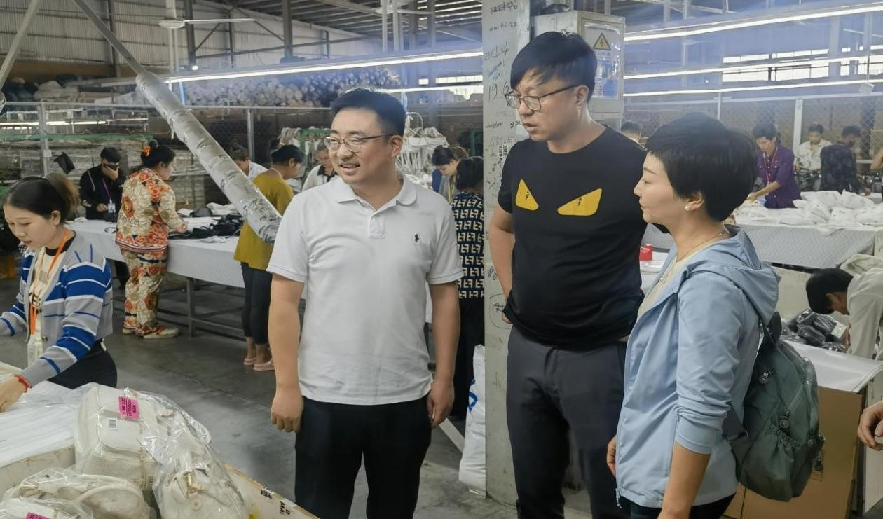 省國貿(mào)集團(tuán)領(lǐng)導(dǎo)應(yīng)春曉、黃道領(lǐng)一行赴浙江土畜柬埔寨箱包生產(chǎn)基地調(diào)研指導(dǎo)
